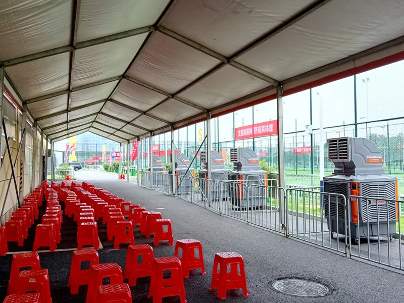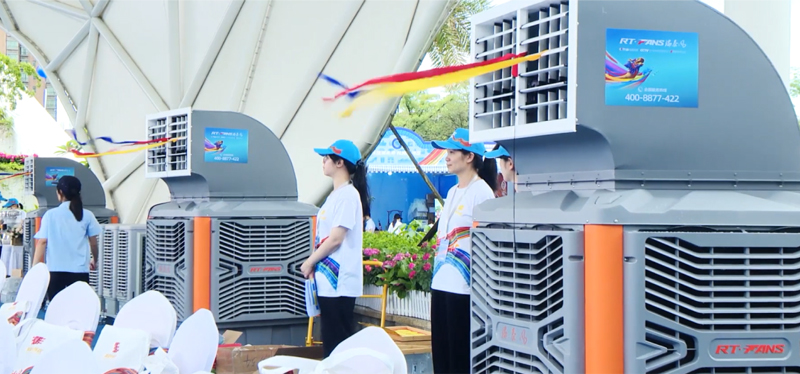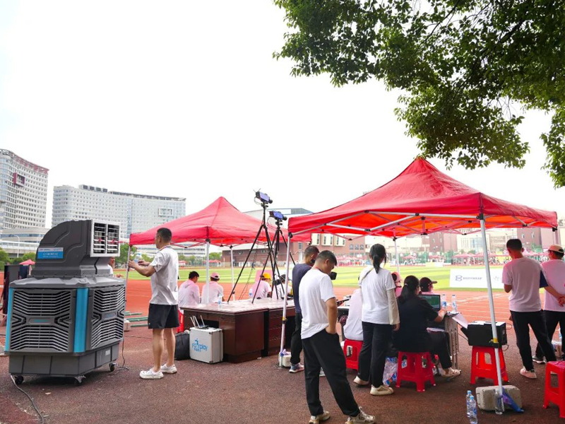 本次活動(dòng)期間,瑞泰風(fēng)經(jīng)過現(xiàn)場(chǎng)實(shí)地考察,科學(xué)規(guī)劃,一次性投放了30套移動(dòng)冷風(fēng)機(jī)設(shè)備,其中包括經(jīng)典版和體育版兩個(gè)系列產(chǎn)品,降溫效果顯著,安裝使用也非常便捷,確保各項(xiàng)室內(nèi)、戶外賽事活動(dòng)的順利開展。移動(dòng)冷風(fēng)機(jī)是一款節(jié)能環(huán)保的降溫設(shè)備,尤其適合戶外使用,僅需2分鐘即可將35℃的高溫降低到26~27℃,達(dá)到人體最舒適,也是多類體育項(xiàng)目最適宜的溫度環(huán)境。此外,移動(dòng)冷風(fēng)機(jī)送風(fēng)距離遠(yuǎn),覆蓋范圍廣,單臺(tái)設(shè)備的送風(fēng)距離可達(dá)30米,并且有效覆蓋120°扇形區(qū)域。