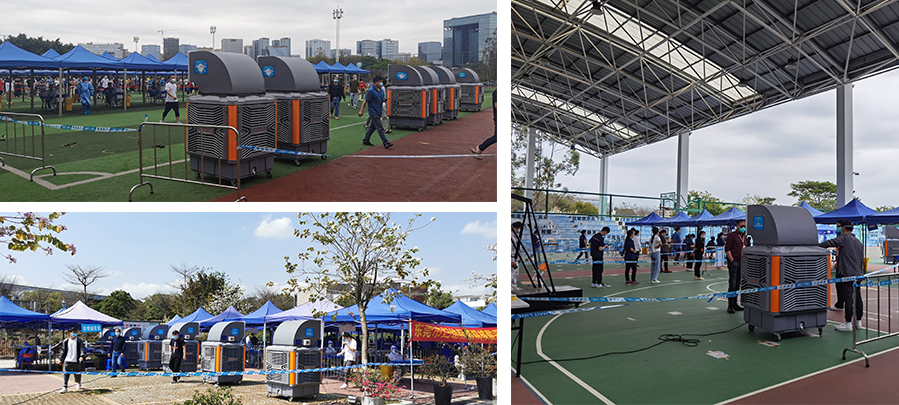3月以來,國內(nèi)疫情有所反復(fù),多地再度開展大規(guī)模核酸檢測(cè),采樣點(diǎn)范圍擴(kuò)大,大量醫(yī)護(hù)人員投身一線。近日廣東瑞泰積極響應(yīng)防疫需求,為多個(gè)核酸采樣點(diǎn)提供移動(dòng)式冷風(fēng)機(jī)消暑降溫,全力保障抗疫工作。