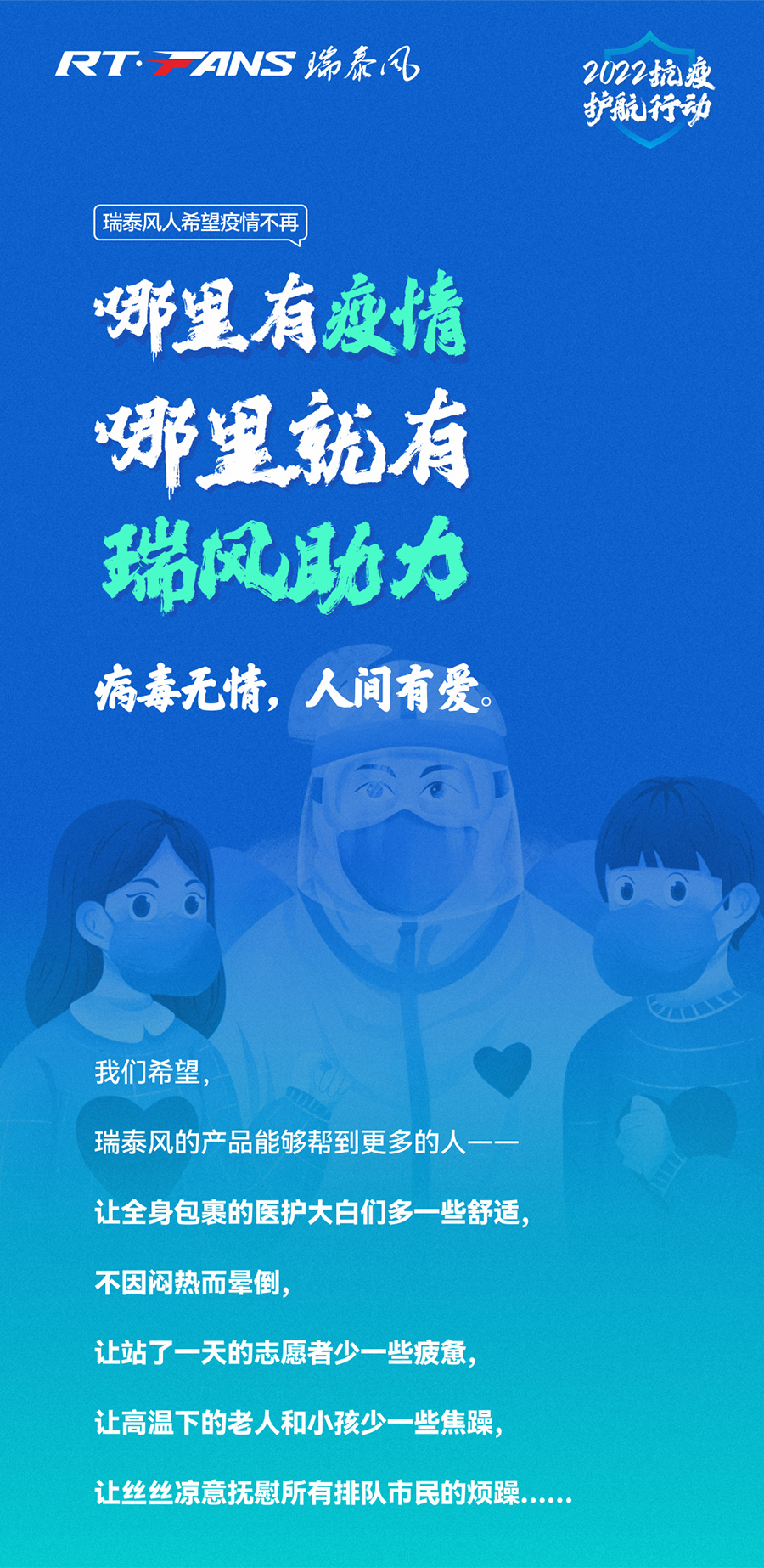 全民“戰(zhàn)疫”,人人有責(zé),瑞泰風(fēng)各級(jí)部門及經(jīng)銷商團(tuán)隊(duì)正在內(nèi)外聯(lián)動(dòng),持續(xù)推進(jìn)“2022抗疫護(hù)航行動(dòng)”,為更多抗疫一線的工作者送上關(guān)愛,為全面戰(zhàn)勝疫情貢獻(xiàn)更多的力量。