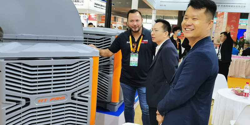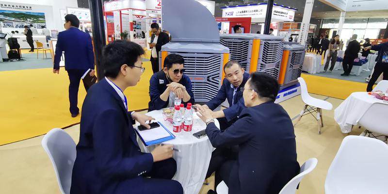 瑞泰風經過精心籌備,并憑借精湛的產品技術水準,高大空間低碳通風降溫設備再次成為展覽會中一大亮點。擁有獨具匠心的產品,現場吸引了眾多中外客商的駐足觀看與咨詢洽談,并解決了意向購商的降溫問題,經過現場工程師及銷售精英對技術解決與方案優(yōu)化,眾多客戶大為滿意,現場達成購貨意向并簽單,未來幾天期待收獲碩豐,滿載而歸。